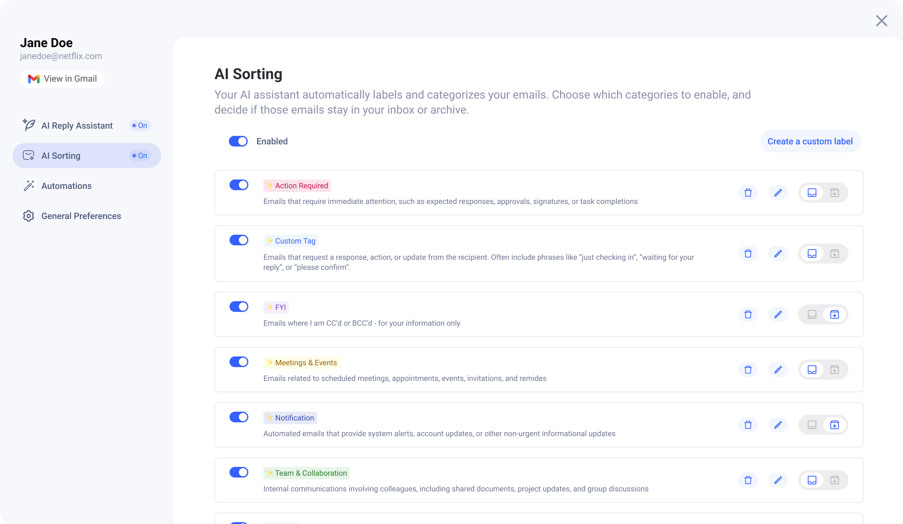 These tags help you gain visibility into your inbox: identify patterns, spot bottlenecks, track trends, and automate actions, such as automatically archiving emails from specific categories to keep your inbox clean.