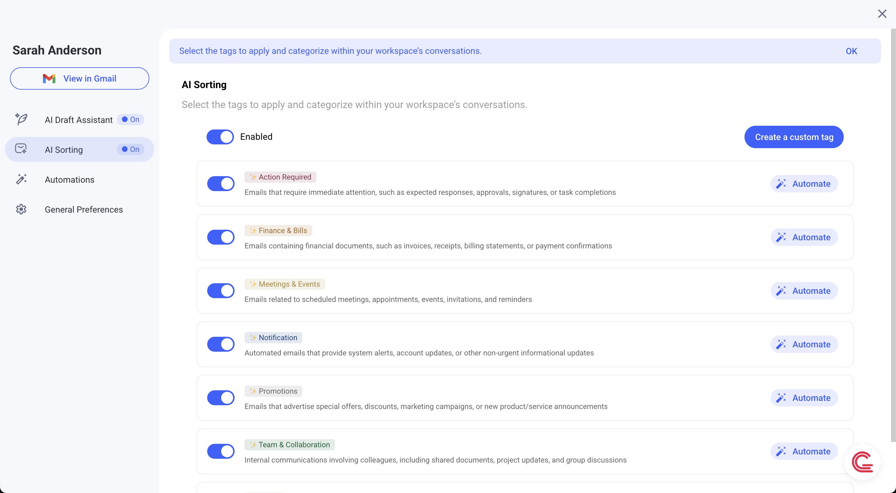 AI Email Sorting Assistants (Formerly AI Tagging)